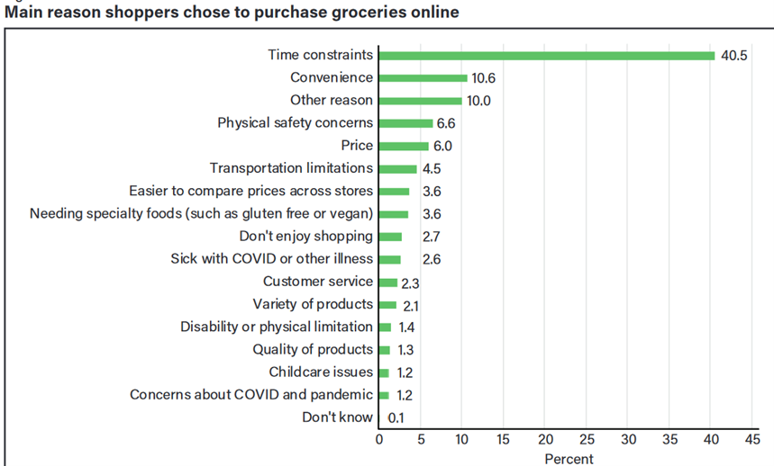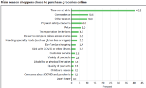 The report examines the rise of online grocery shopping in the US, revealing that about one in five households currently do grocery shopping online at least once a month. The majority of shoppers are female, aged 15-24, non-Hispanic White, married or partnered, with young children, more educated, income ineligible for SNAP benefits, or frequently do grocery shopping in their households. Pickup and delivery options are chosen almost equally, and time constraints are the main reason for online shopping. This shift can inform program, policy, and retailer decision-making, potentially improving food access, fostering healthier purchases, and altering the food retail landscape..(download the report, 22 pages.. Read